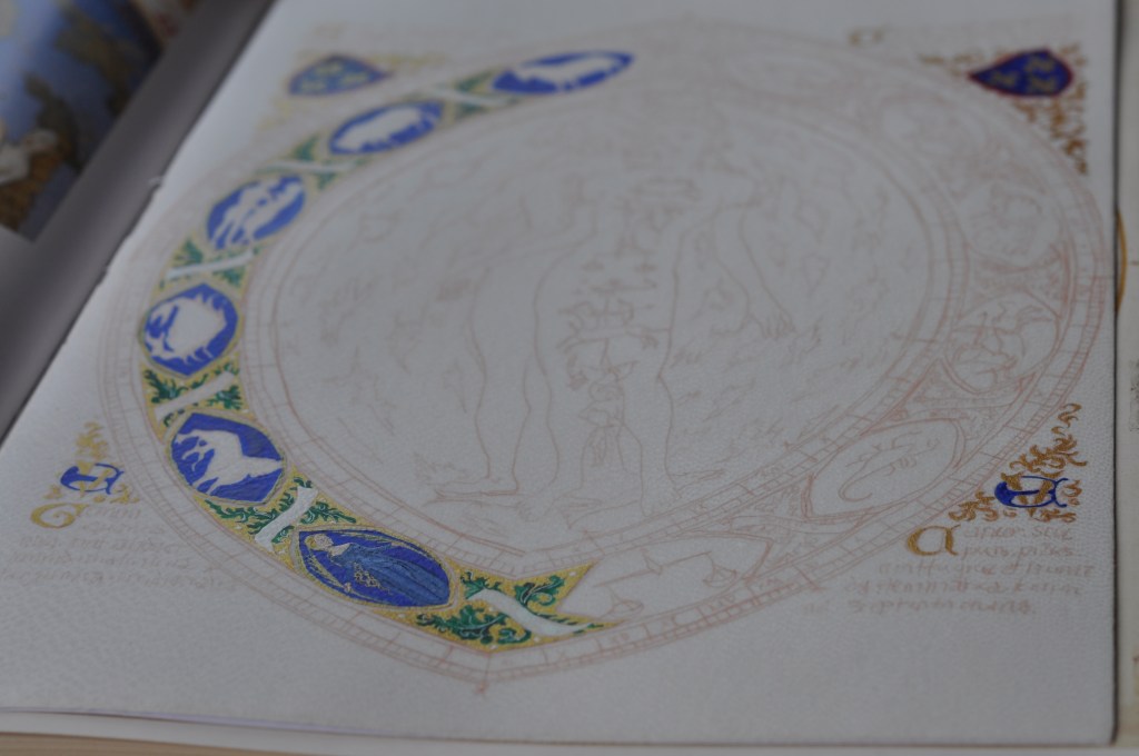 This is moreover a historically accurate method employed in manuscript illumination. Images were at times transferred in this manner. For example, Cennini notes how to make a form of tracing paper from fine kid parchment & linseed oil.