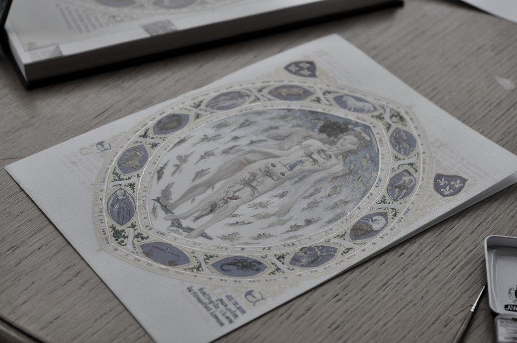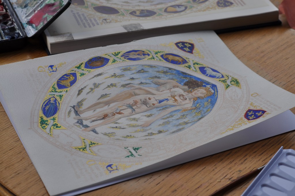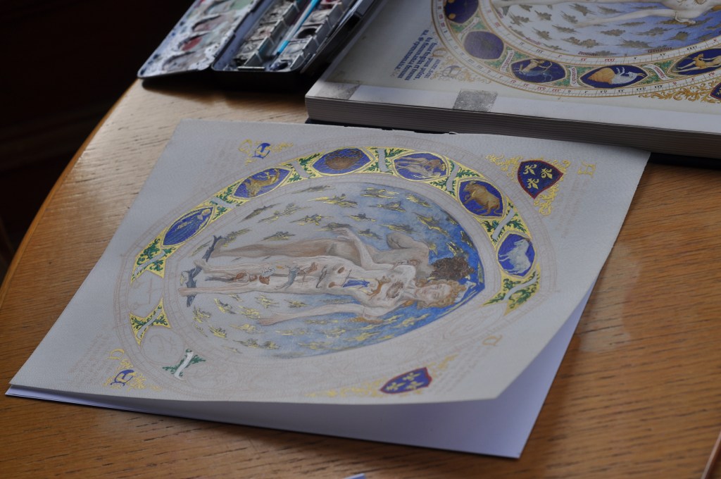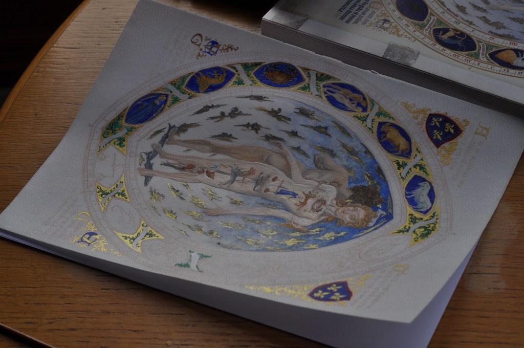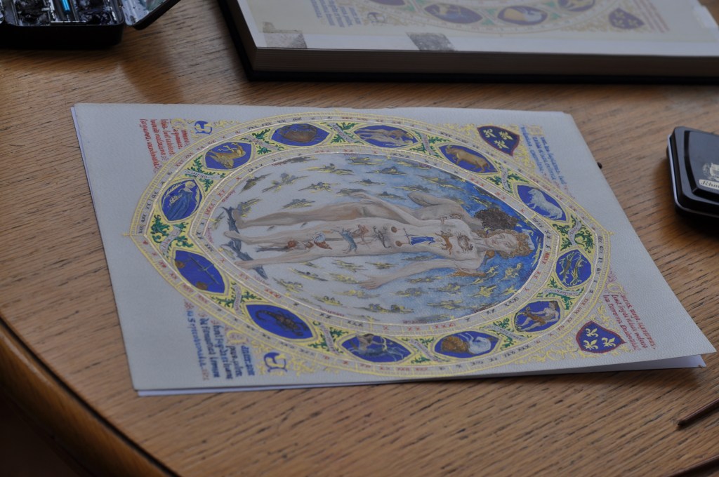 By working closely with the Limbourgs version of this iconography I was able to think carefully about some of its more unusual features. The twinning figural aspect, gender, and deliberate complexity being some of the key areas that become inescapable when you engage with the image on a close level. By reproducing this macro-/micro-cosm idea within a computational machine, set-up with a complex level of timekeeping data – the image goes far beyond the standard iconography. This is an area, I am working on in relation to a publication on this project, but for now, I will end with one of my key findings: making helps you to see more clearly and by engaging physically with the act of creating such an image, new knowledge is, I would argue, always revealed.
