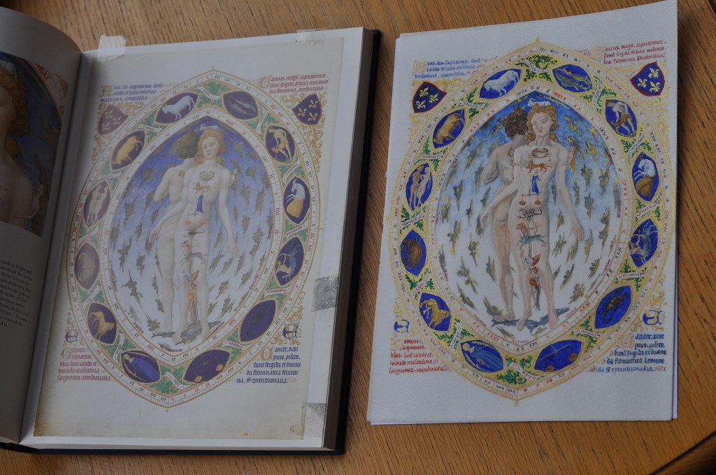 There is a great deal of individual subjectivity in the process of drawing. People aren’t predictable, and everyone has a slightly different frame of reference from which they ‘see’ their subject. Therefore adhering to the Limbourgs’ exact proportions was important for this exercise.