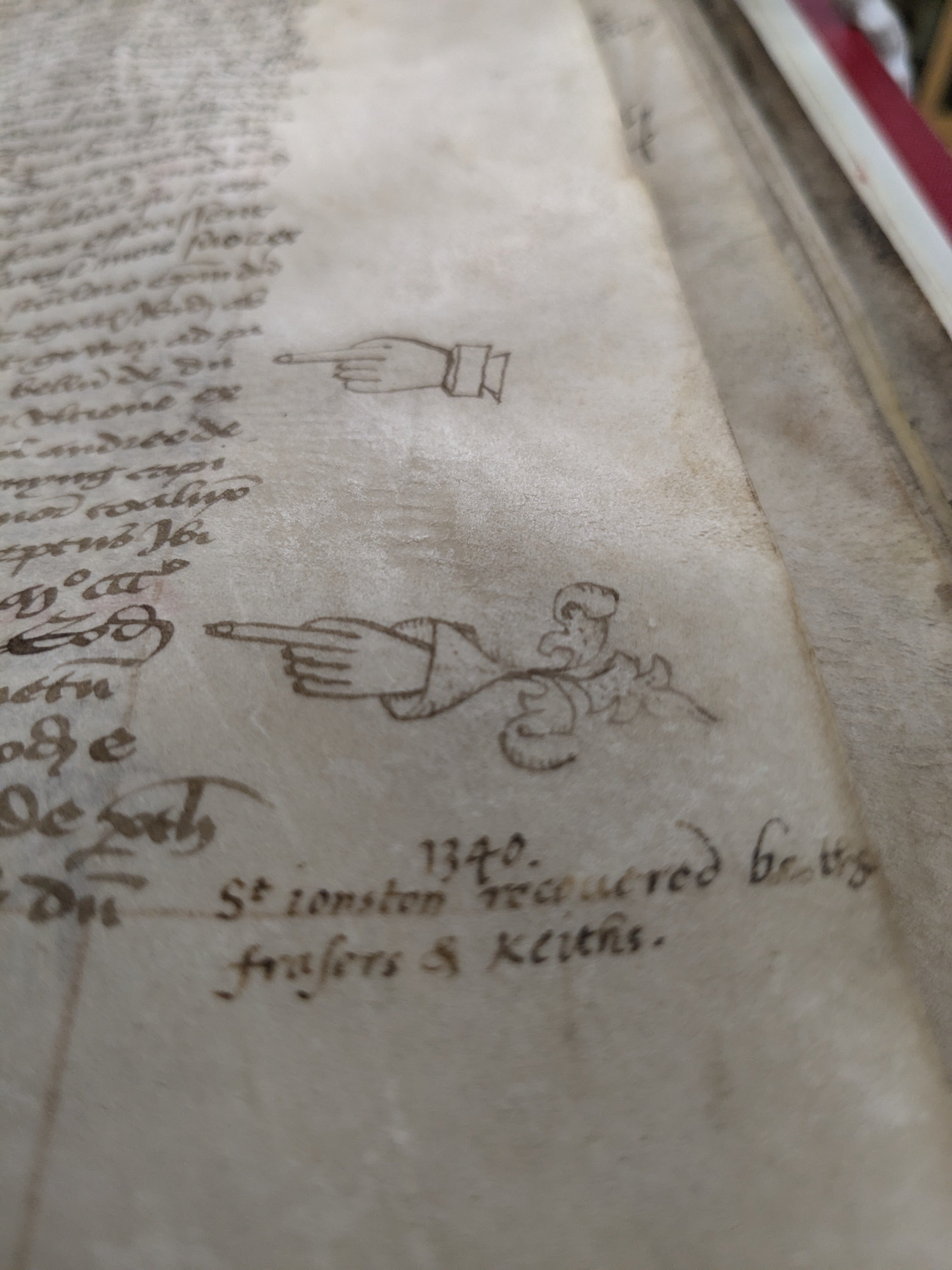 Yesterday, I did indeed manage to see 6 of my 12 manuscripts. 4 were select & could not be photographed. Initially this was frustrating, but it did force me to take pages & pages of hand written notes… So not all bad. I will try to order some images when back in Edinburgh.