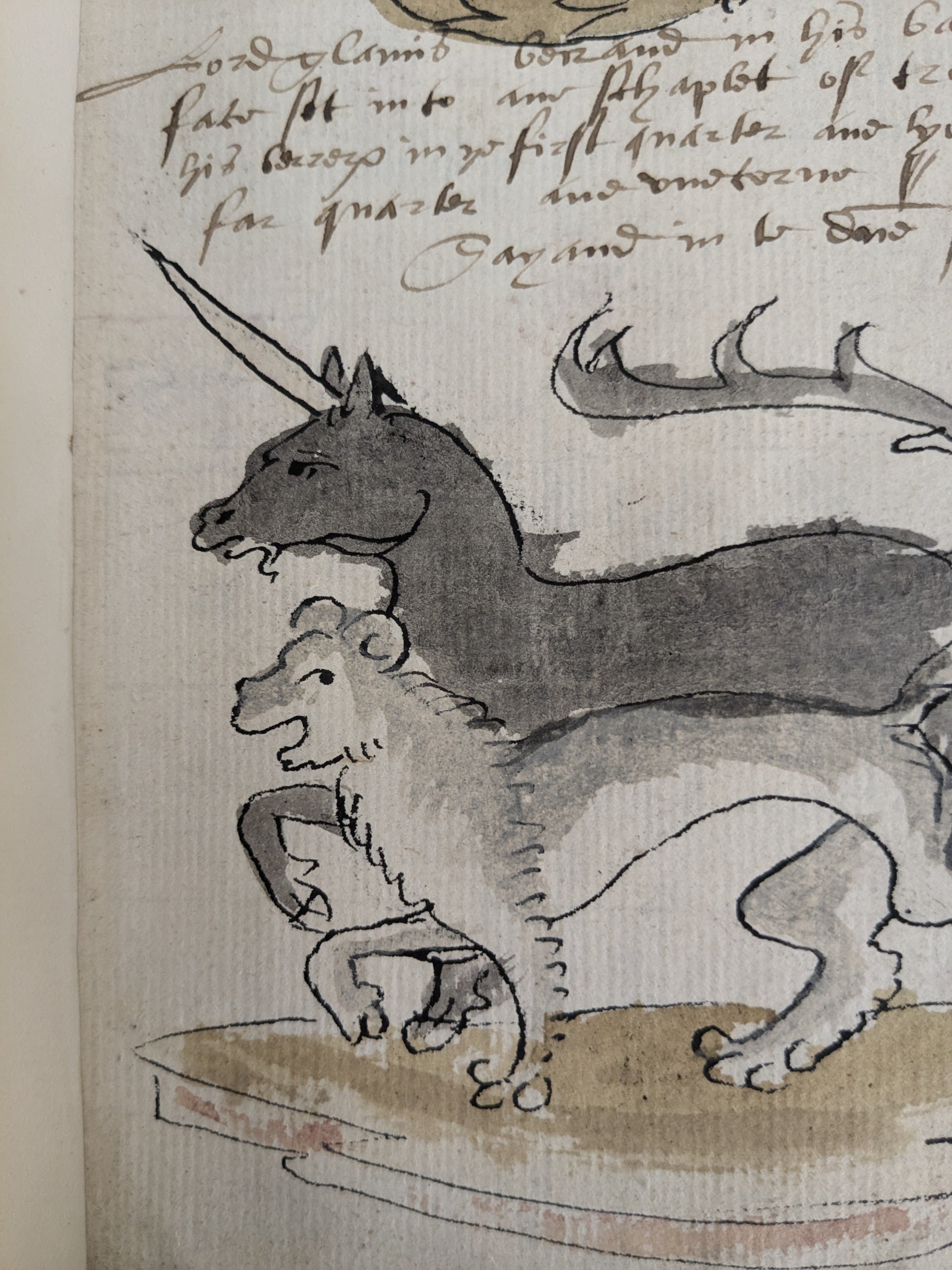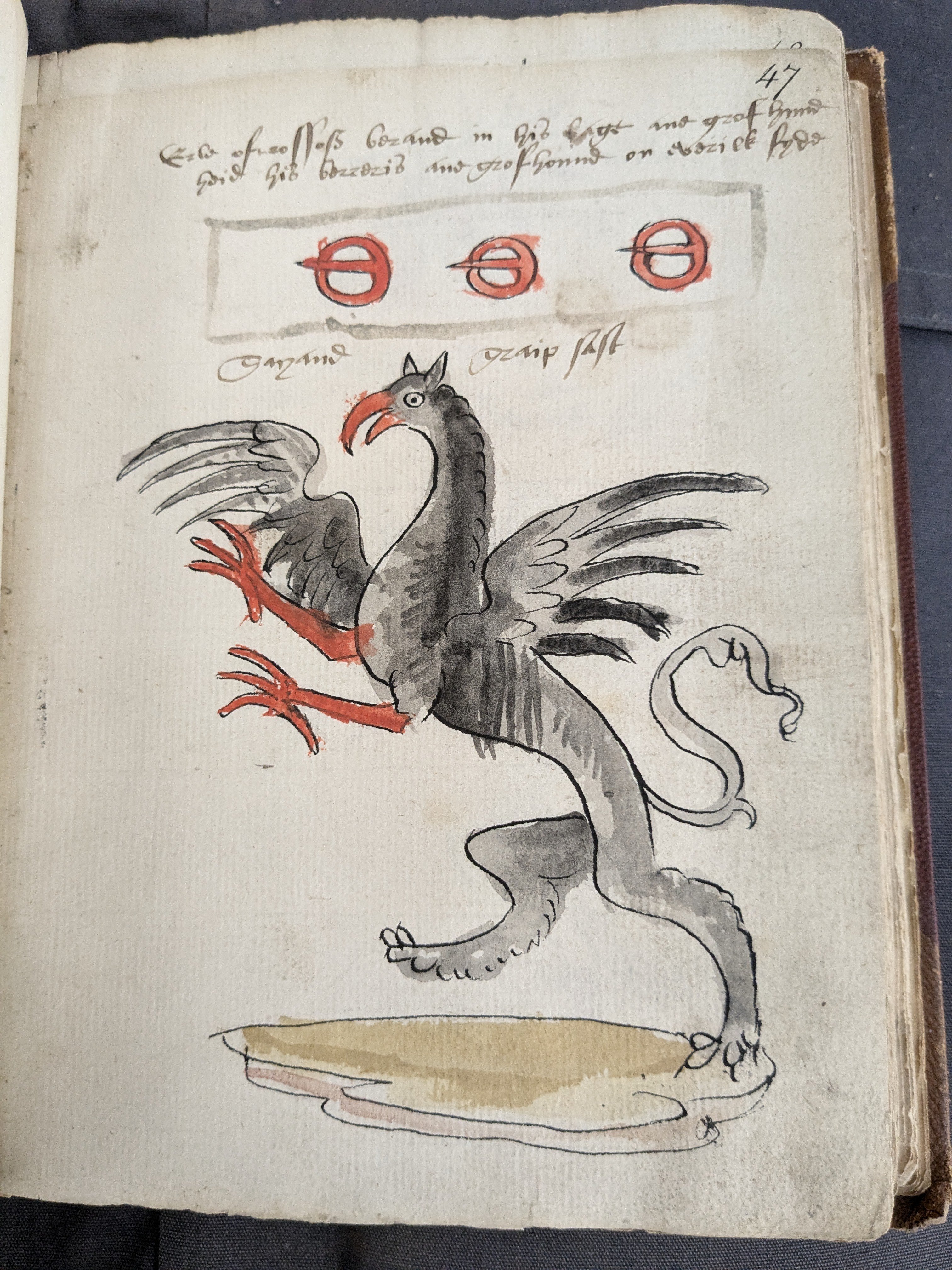 I found some wonderful beasts on day 2! I managed to see all six manuscripts after a bit of waiting for some. I was also delighted to see @Lucy_HS_Dean in the reading room today. A nice little Scottish research contingent in London! This is one of the great pleasures of having some research time – seeing other researchers busy at work.