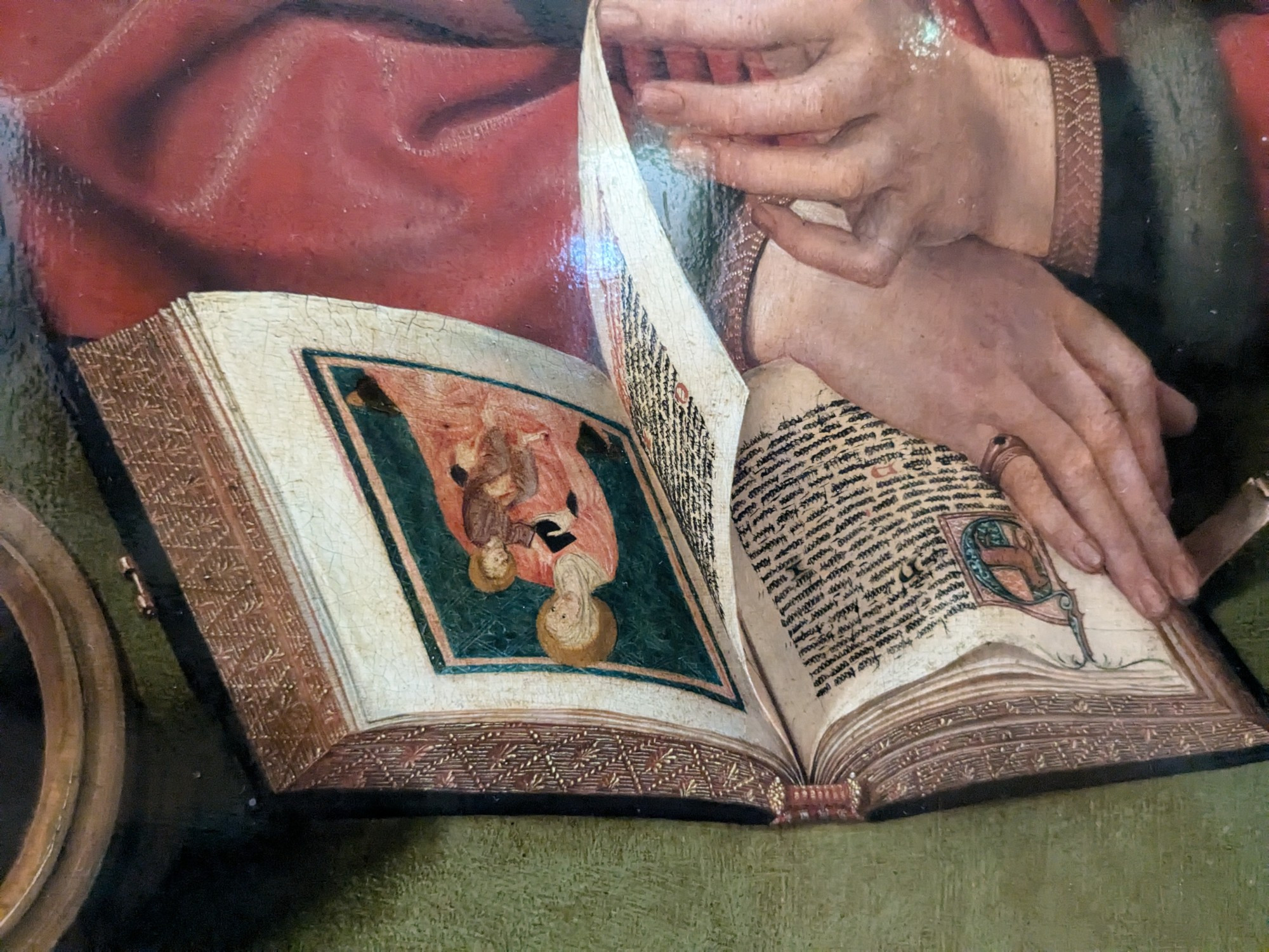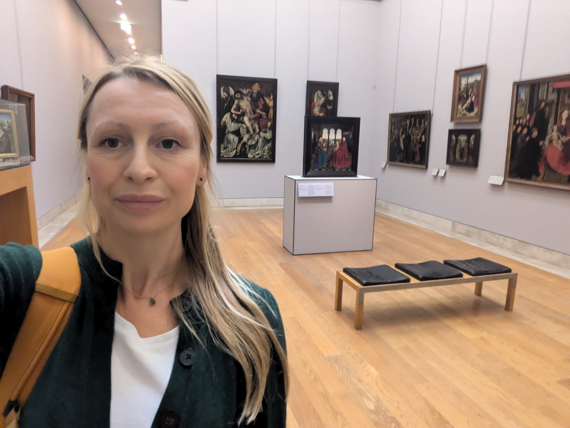 To celebrate the historic conservation work carried out on Jan van Eyck’s famous panel – the first intervention of its kind since the painting entered the museum in 1800 – there was earlier in the summer a small exhibition conceived around this work. I had missed this, however, it was fantastic to be able to scrutinise this work back on display in its usual spot.