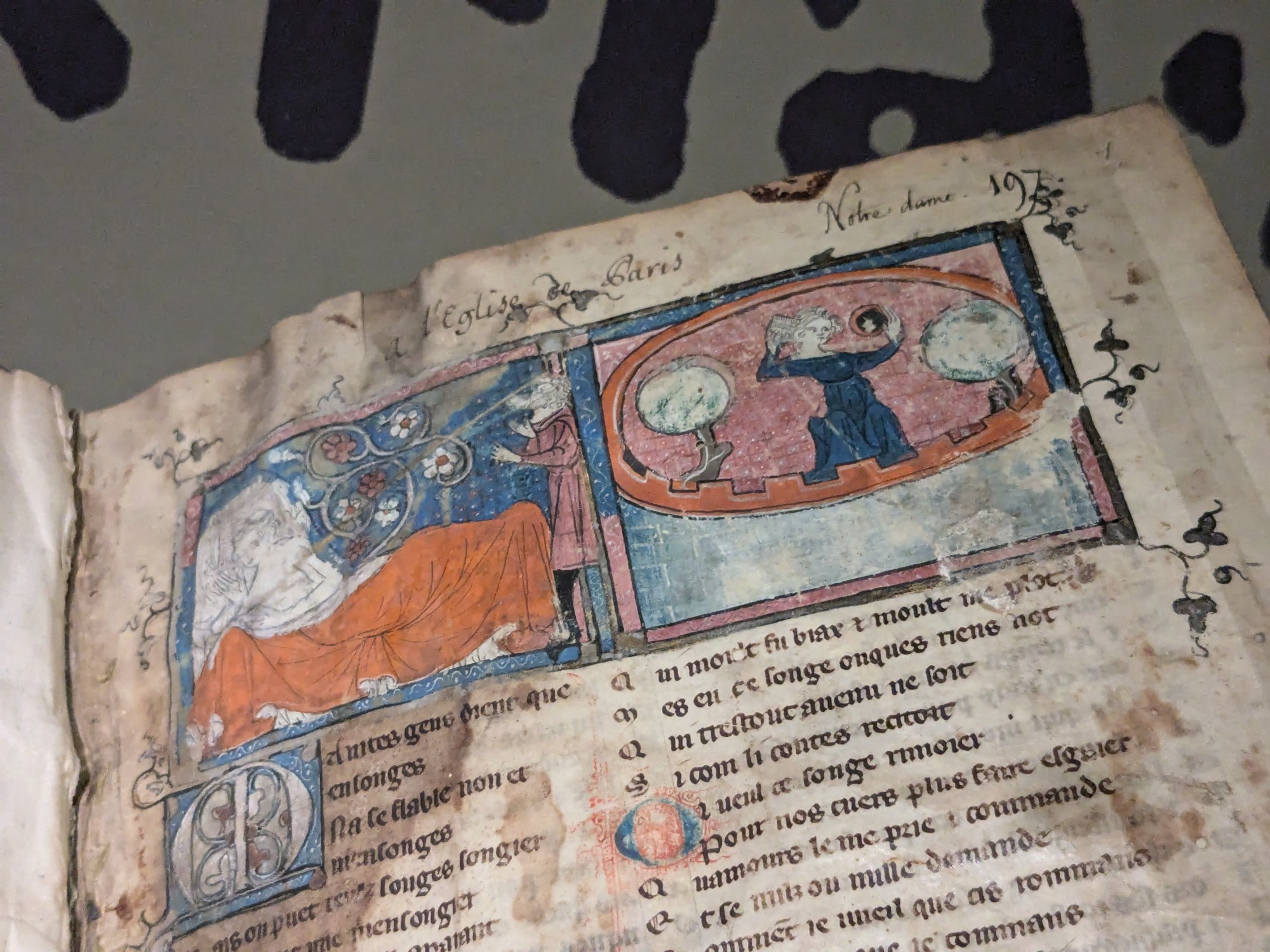 Since 1756 most of Notre-Dame’s medieval manuscripts – some 300 documents – have been stored at the BnF. And now the Musée de Cluny exhibition is revealing the richness of this collection through a curated selection of around 40 documents. In addition to precious medieval manuscripts from the Department of Manuscripts and the Bibliothèque de l’Arsenal in Paris (part of the BnF), it features two illuminated pages from the Musée de Cluny’s collections, five chapter registers documenting the cathedral’s book management; three manuscripts and a map on loan from the Archives nationales, as well as an illuminated manuscript from the Archives historiques de l’Archevêché. Structured around four key themes – library management, text books, witnesses to worship and the future of the medieval library in modern times – the visitor journey offers a snapshot of the cathedral’s rich intellectual, artistic and religious life during the Middle Ages.