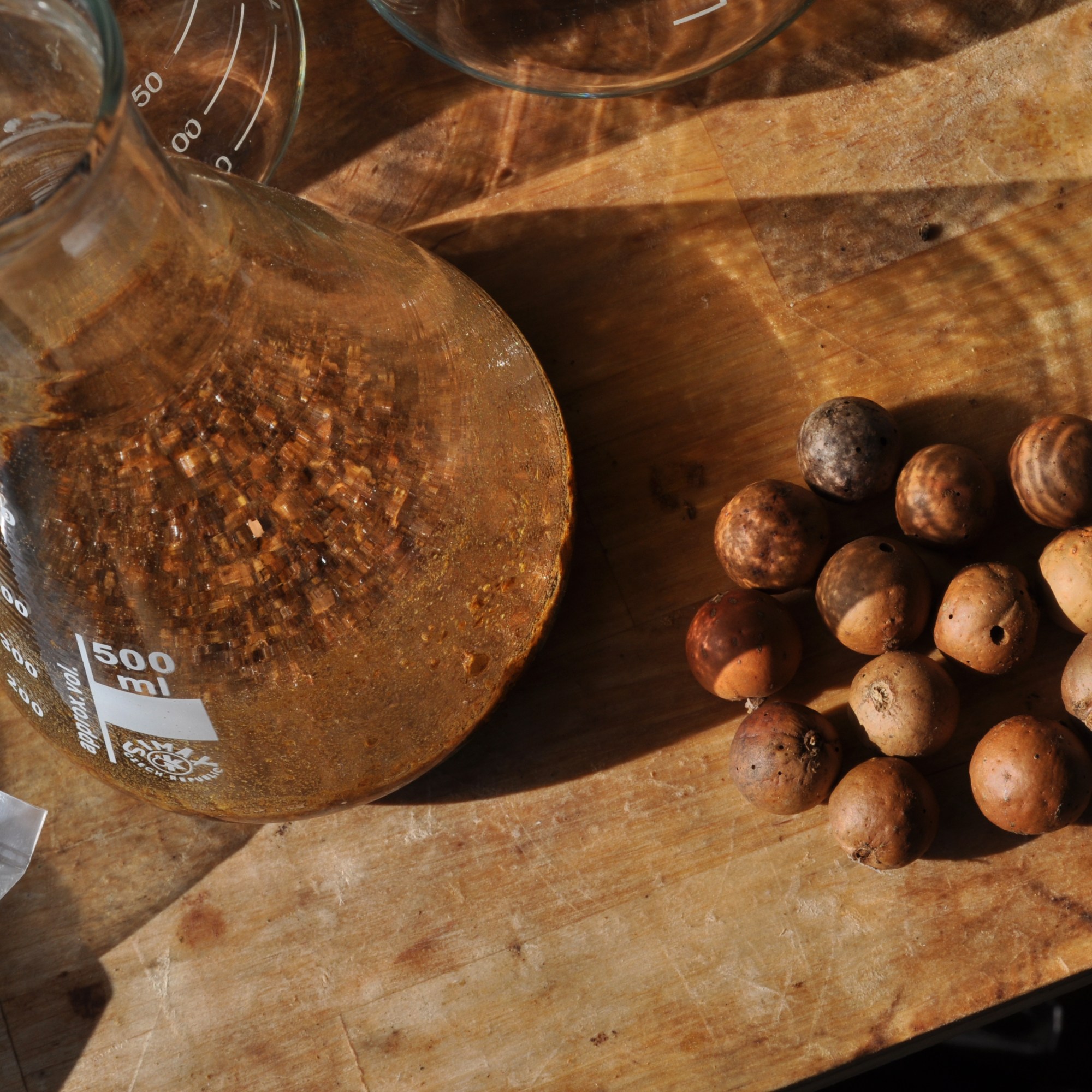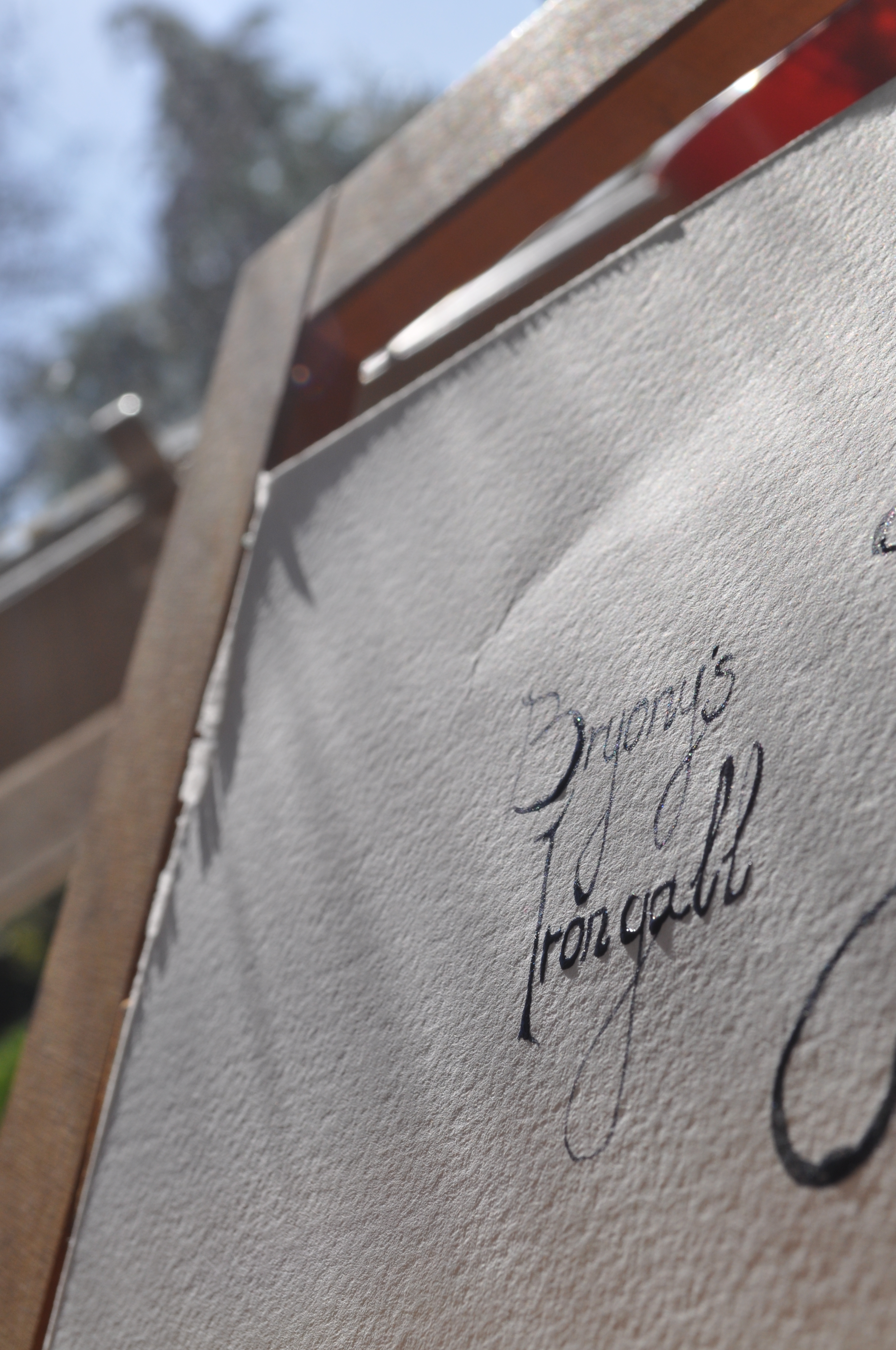 Various recipes for iron gall ink survive from the medieval and late-medieval periods, here I used the following: