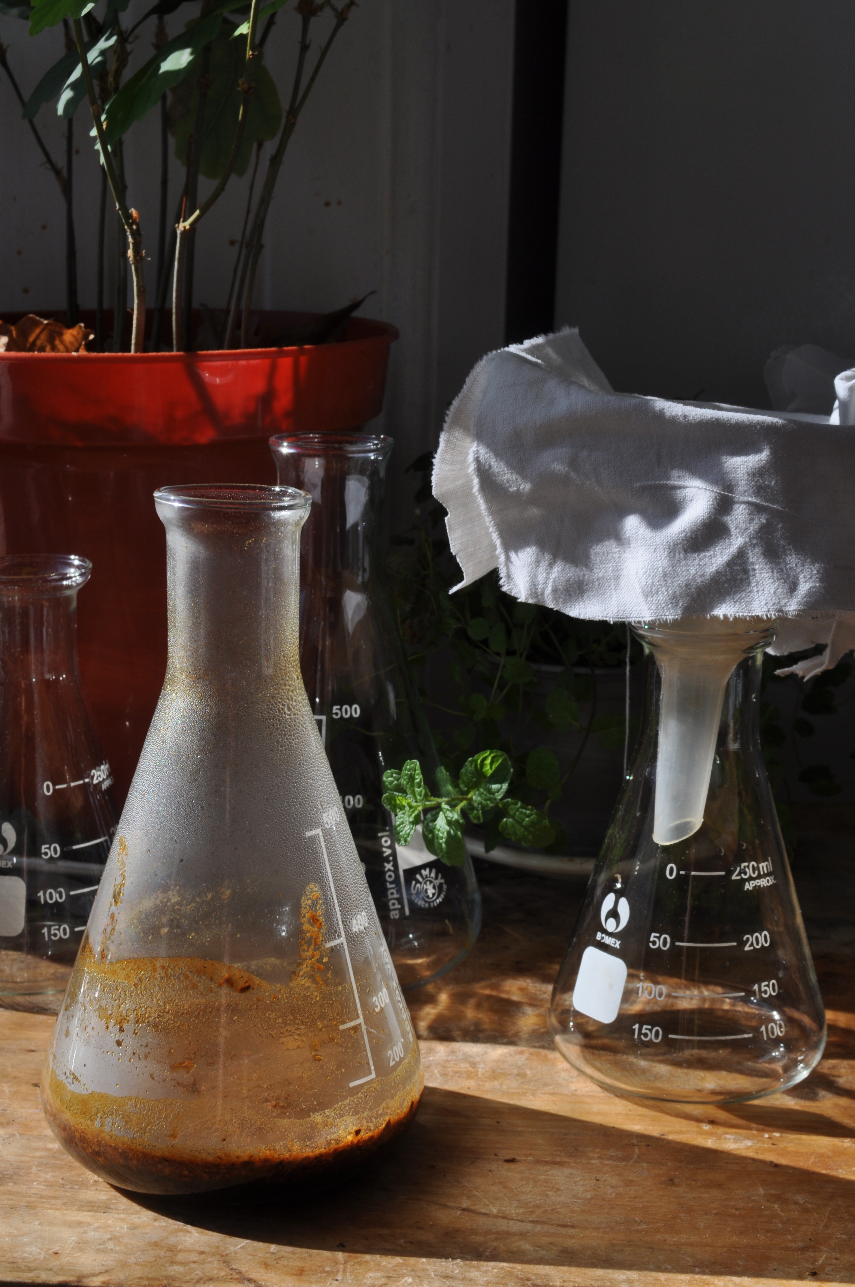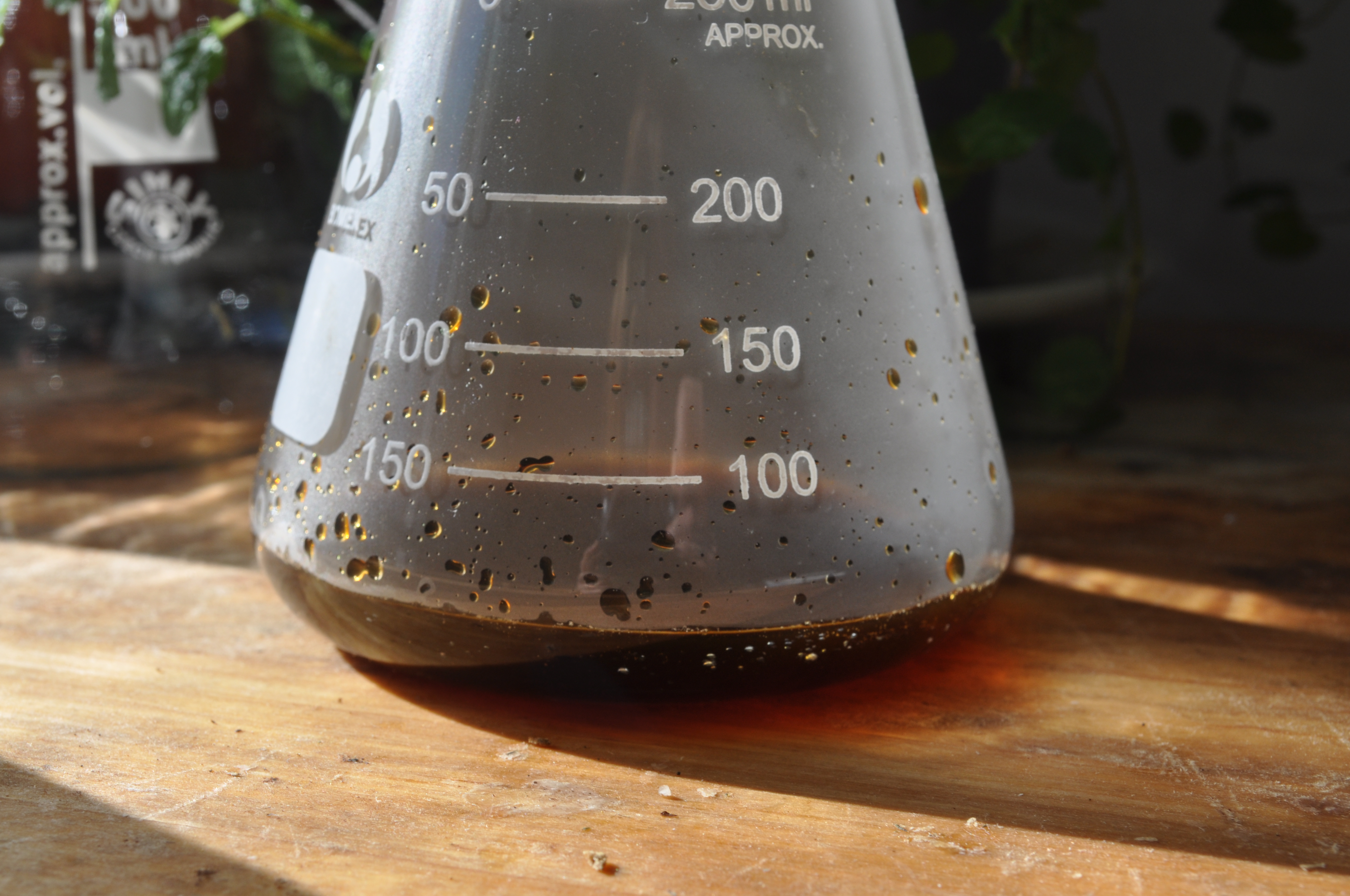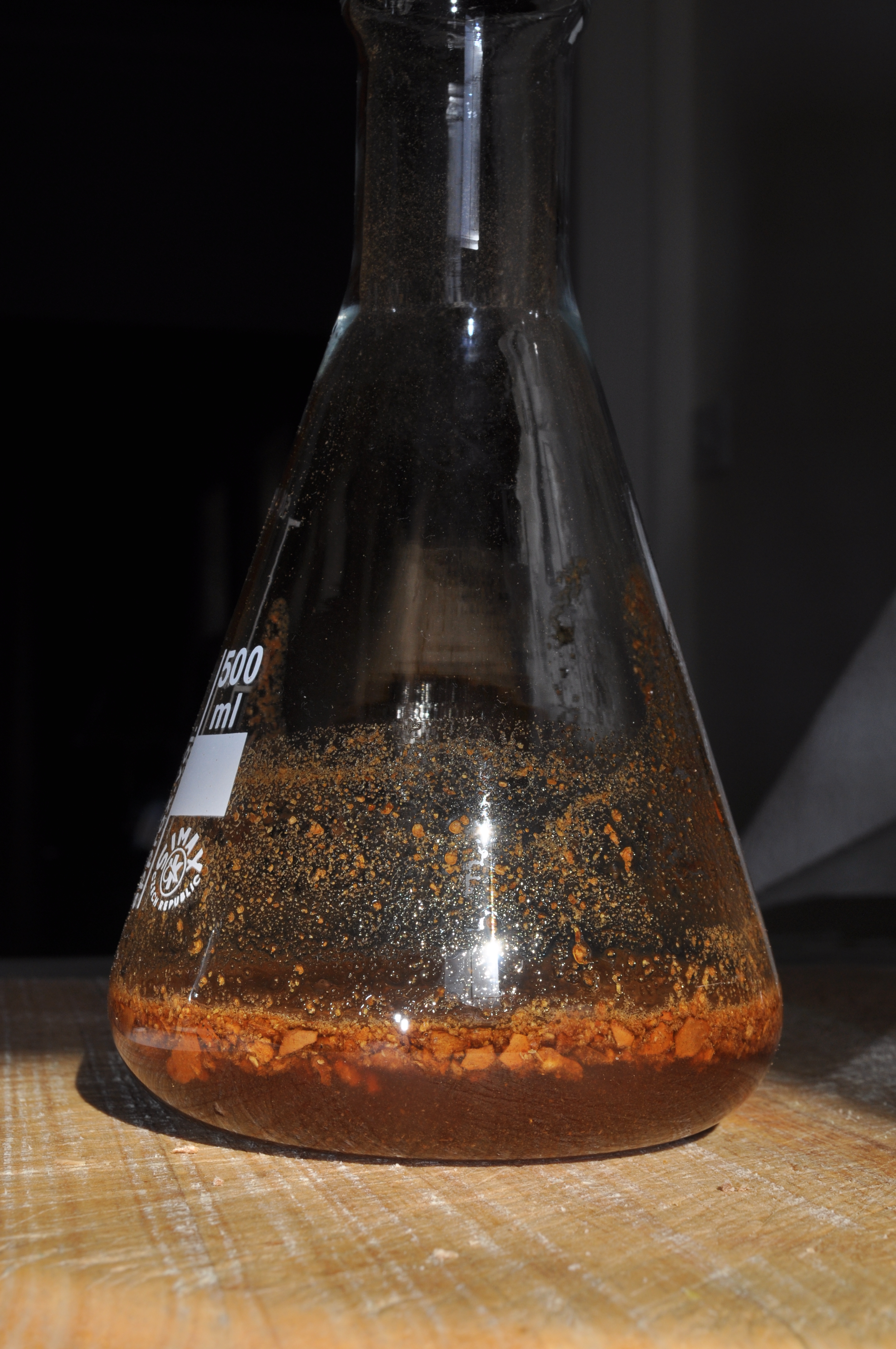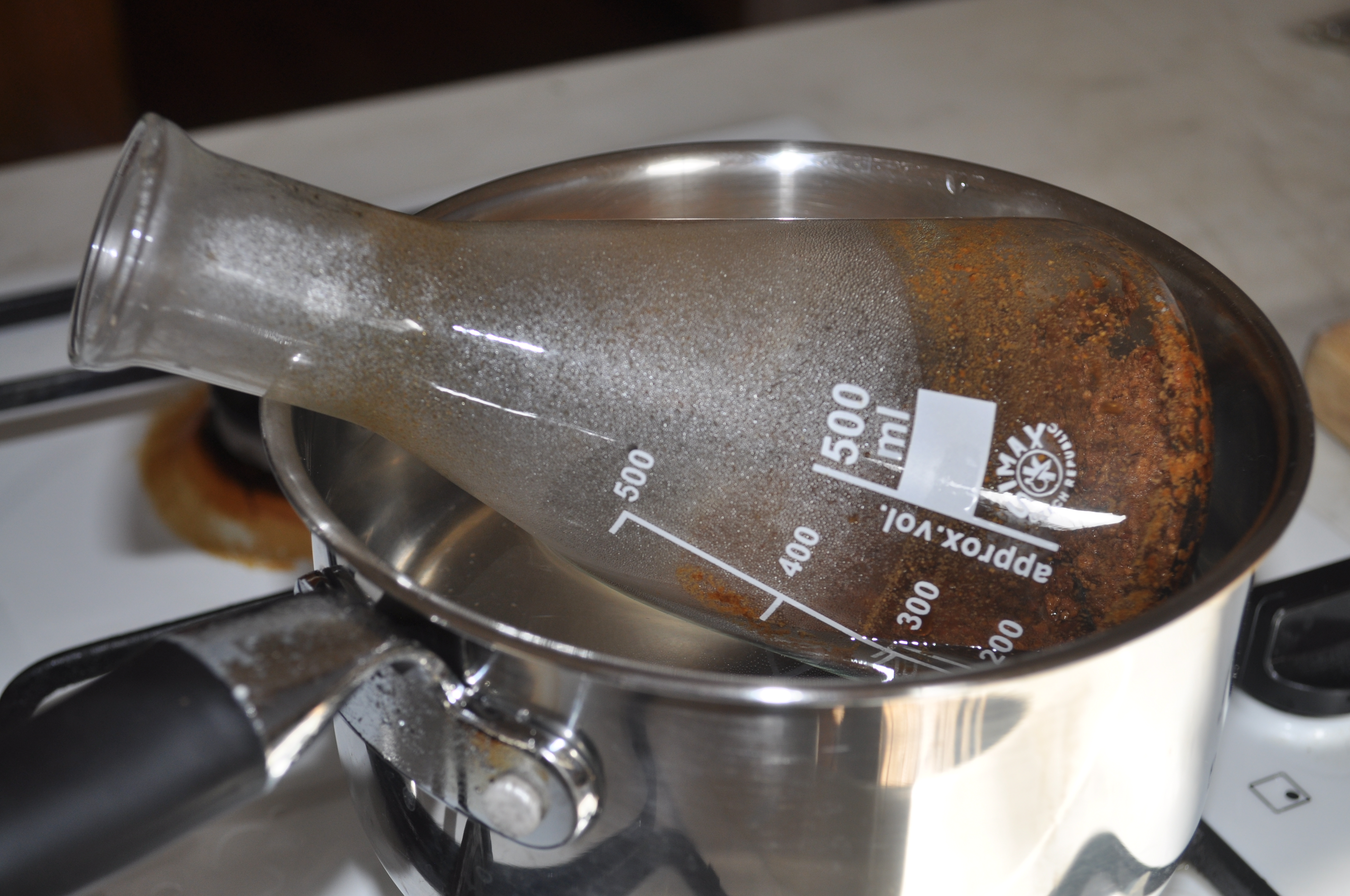 However, be careful that the gum arabic doesn’t just sink and stick to the base of the flask.