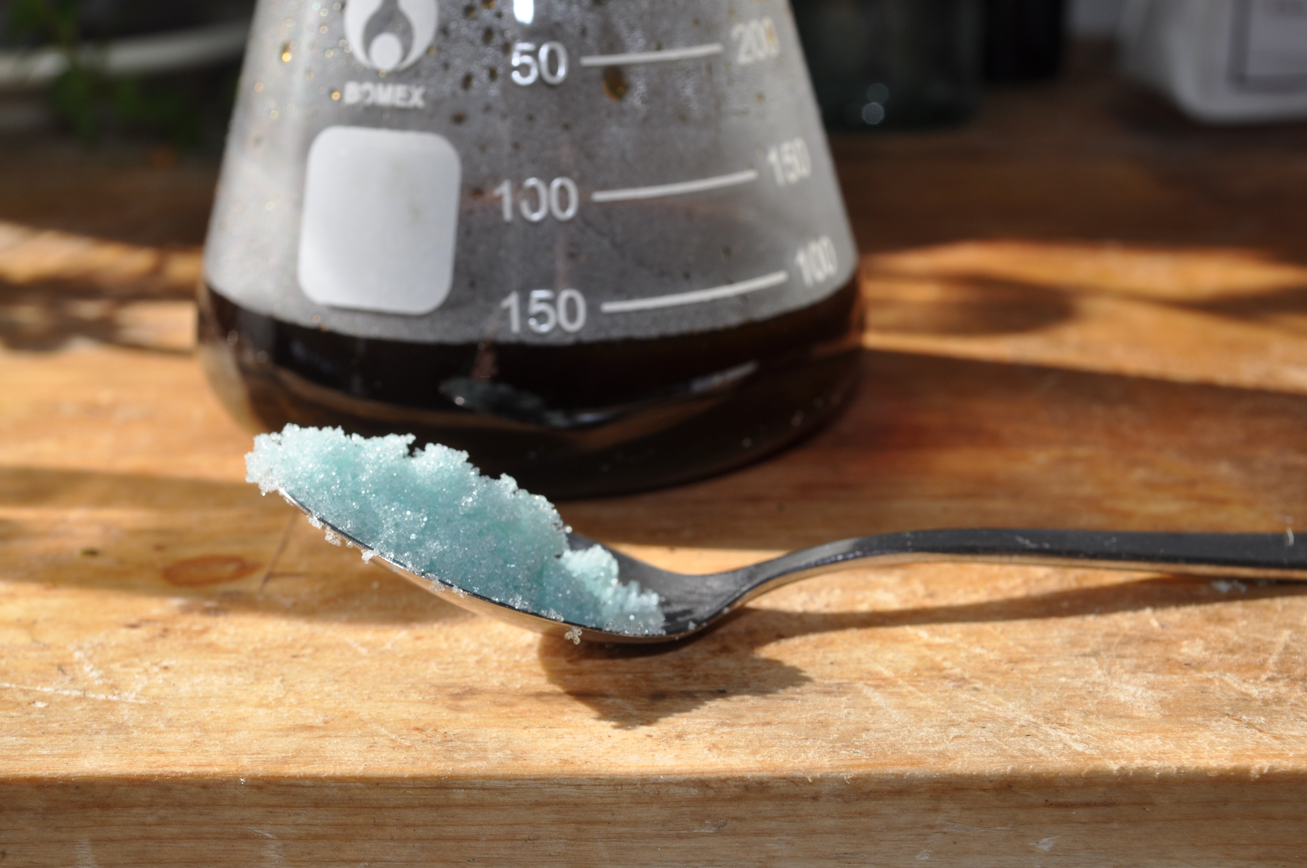 - Ferrous sulphate (FeSO4): A metallic salt that forms blue-green crystals. In ancient times, people used naturally occurring melanterite (FeSO4・7H2O).