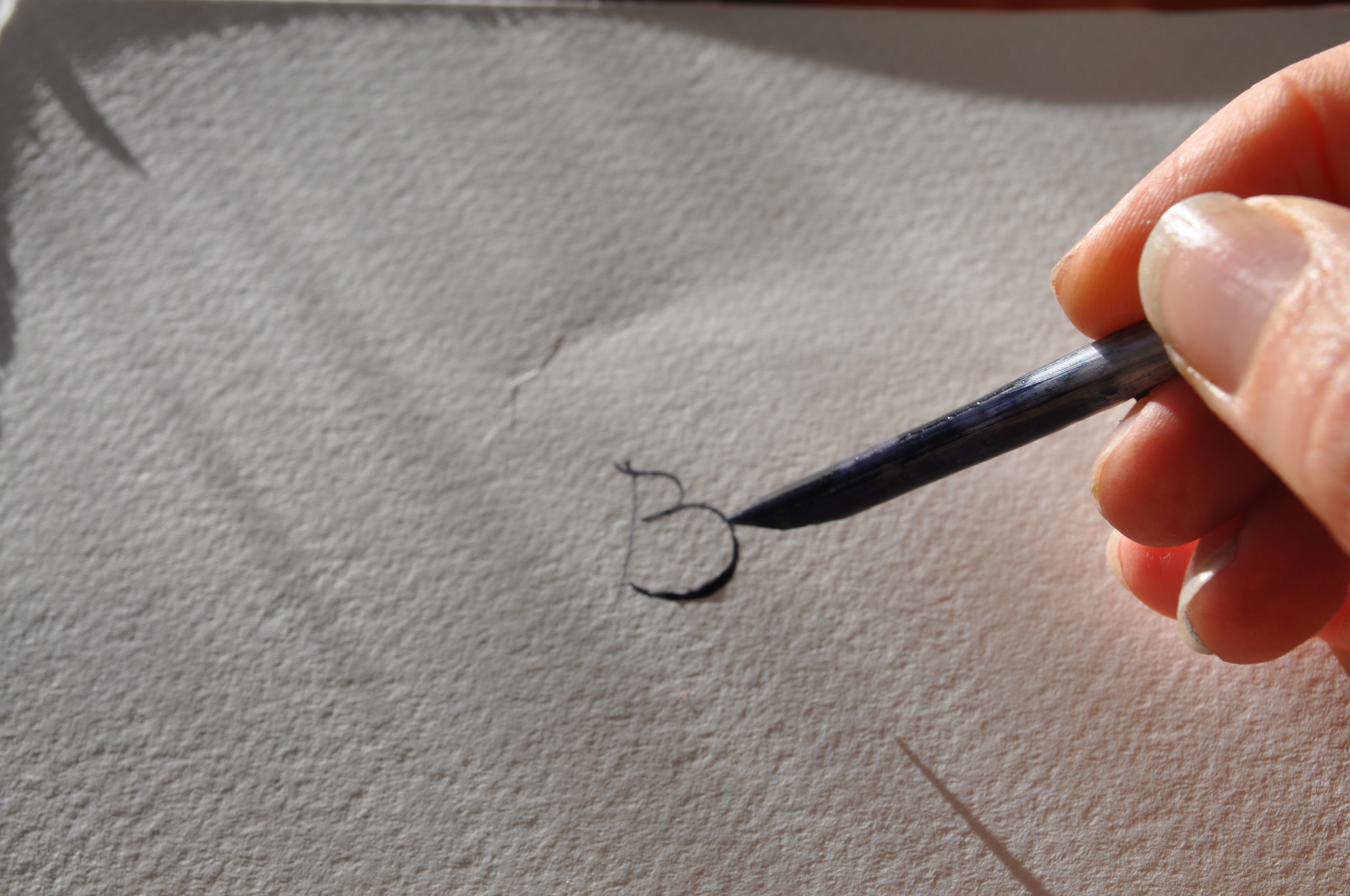 When the ink was applied, it was initially a translucent grayish brown, over a few seconds, the colour gradually turned deep black.